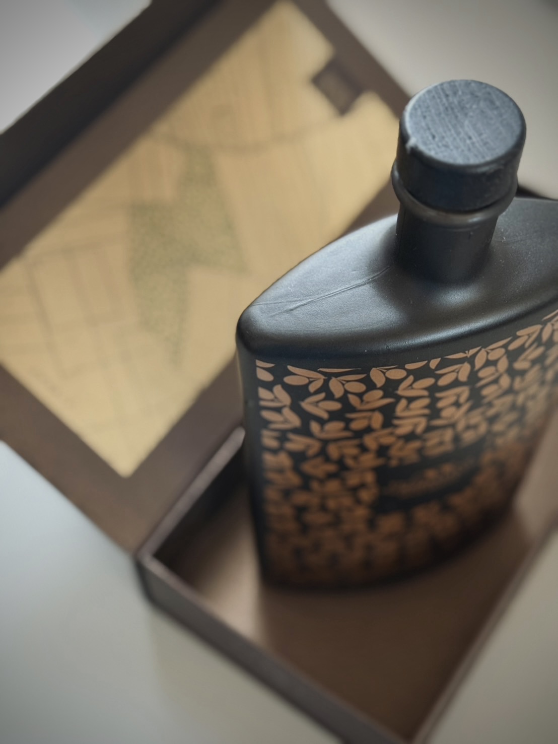 內含無可比擬的精華,油色深綠帶金黃光澤,香氣奔放,交織著茴香、朝鮮薊、胡椒與乾草的氣息。