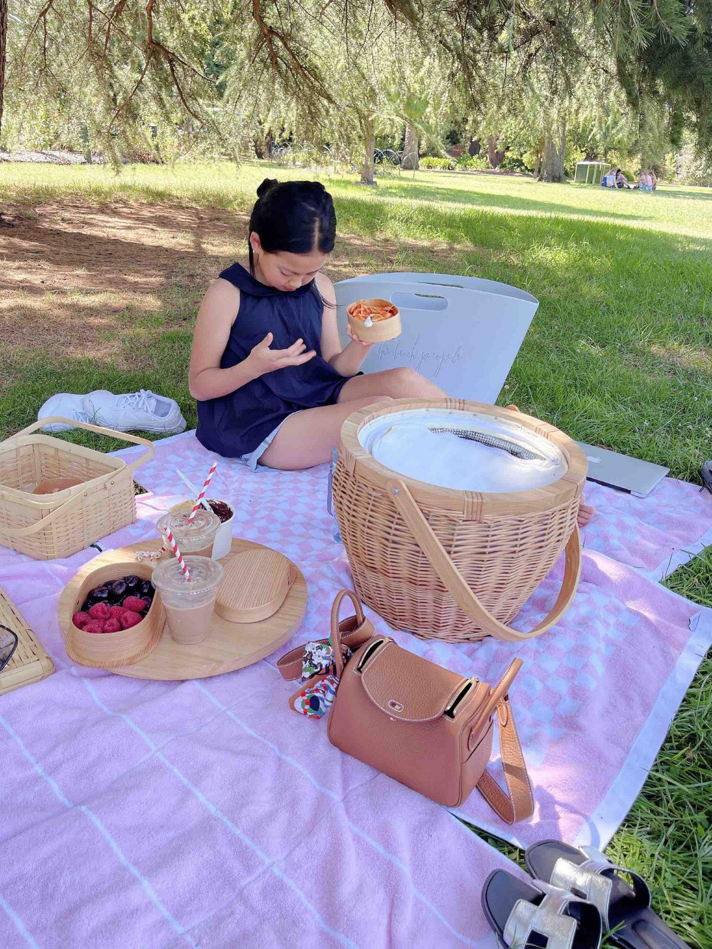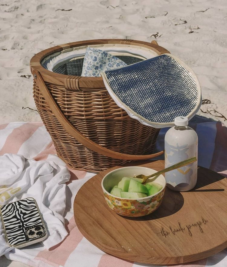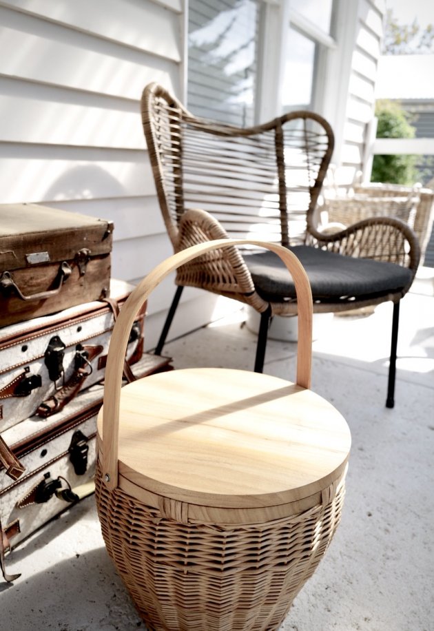 天然原木桌面 每個手工野餐保冰提籃都是獨一無二的