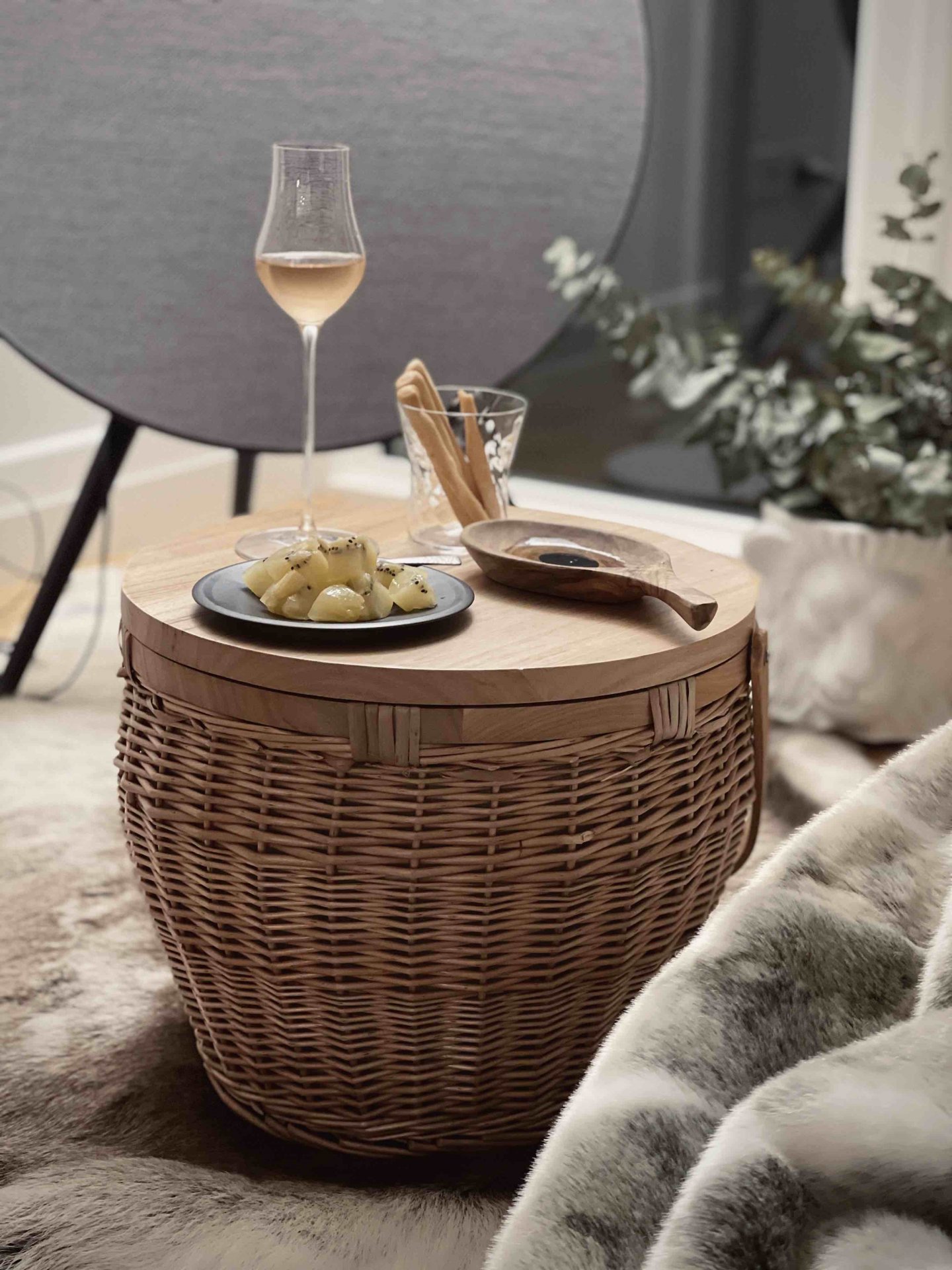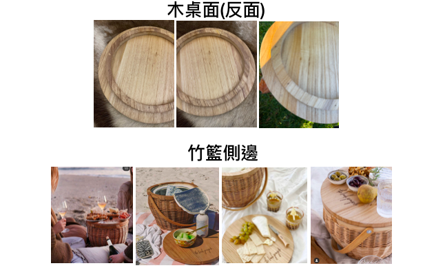 1. 戶外室內皆宜2. 功能強:提籃、小木桌、起司盤(光滑木蓋)、保冰袋
