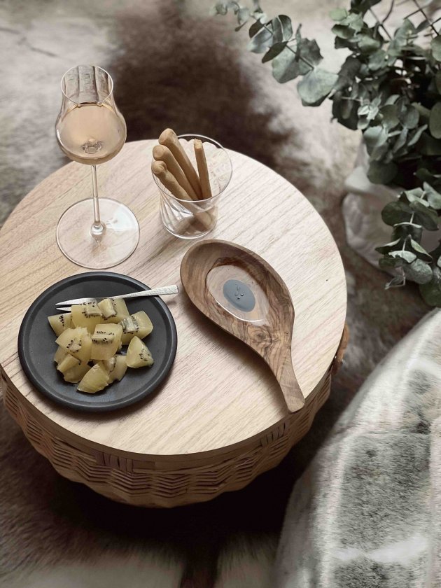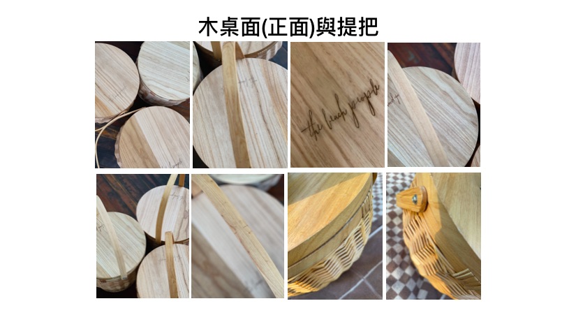 每個籐籃蓋子 也就是桌面 以及提把 都有不同木紋 顏色深淺 甚至暗色或黑色木紋